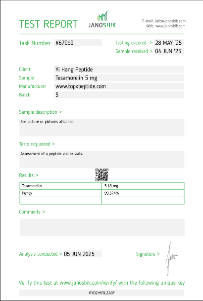 Tesamorelin is a synthetic 44 amino acid polypeptide analog of GHRH. It has been specifically developed to reduce excess abdominal fat in HIV patients with lipodystrophy. Tesamorelin works by activating GHRH receptors in the pituitary gland, leading to the synthesis and release of growth hormone. This, in turn, stimulates the production of insulin-like growth factor-1 (IGF-1) in the liver, which mediates many of the effects of growth hormone.
