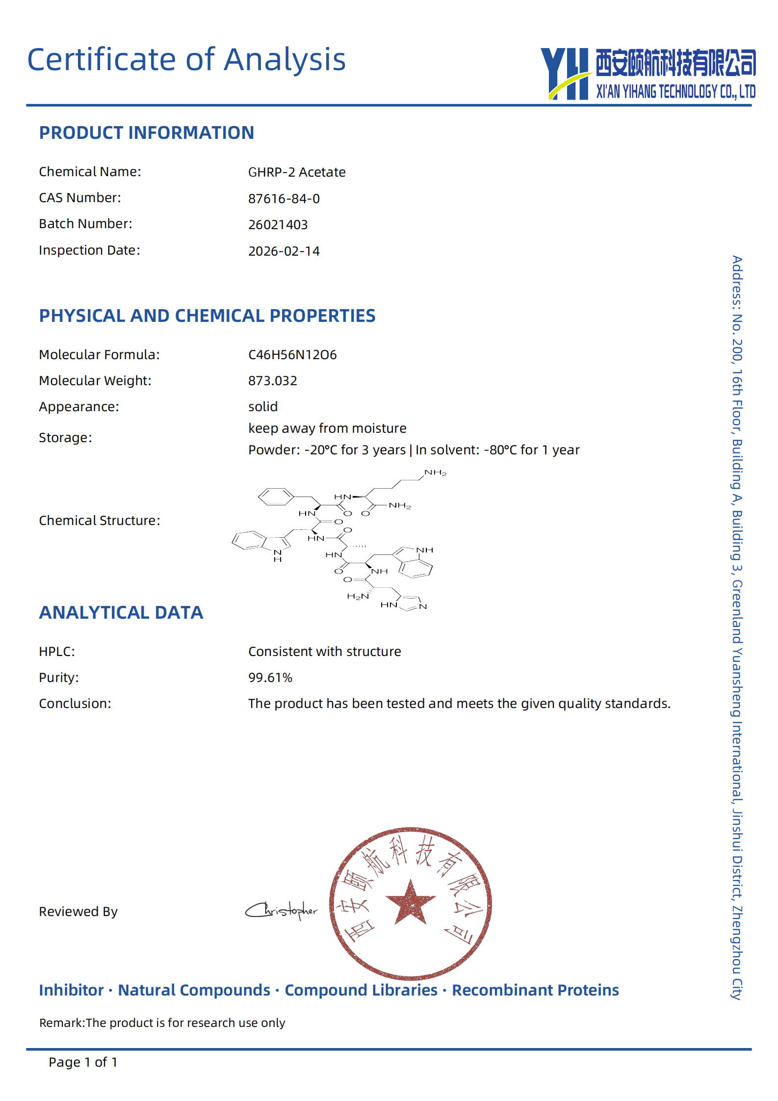 GHRP-6 is a growth hormone releasing peptide that stimulates the hypothalamus to secrete growth hormone releasing hormone (GHRH), thereby promoting the secretion of growth hormone from the pituitary gland. It is mainly used to study the regulatory mechanism of growth hormone.