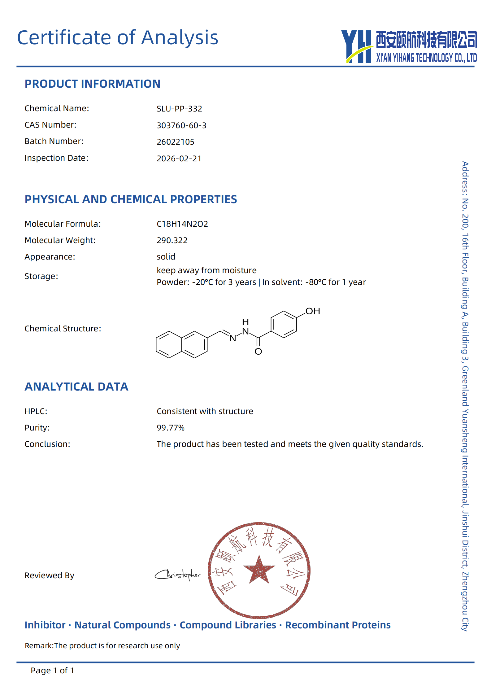 SLU-PP-332 is a compound which is a potent but non-selective estrogen-related receptor (ERR) agonist, acting most strongly at ERRα with an EC50 of 98 nM. It was found to counteract metabolic syndrome in mice, suggesting a possible role for compounds from this class as medications for the treatment of obesity.